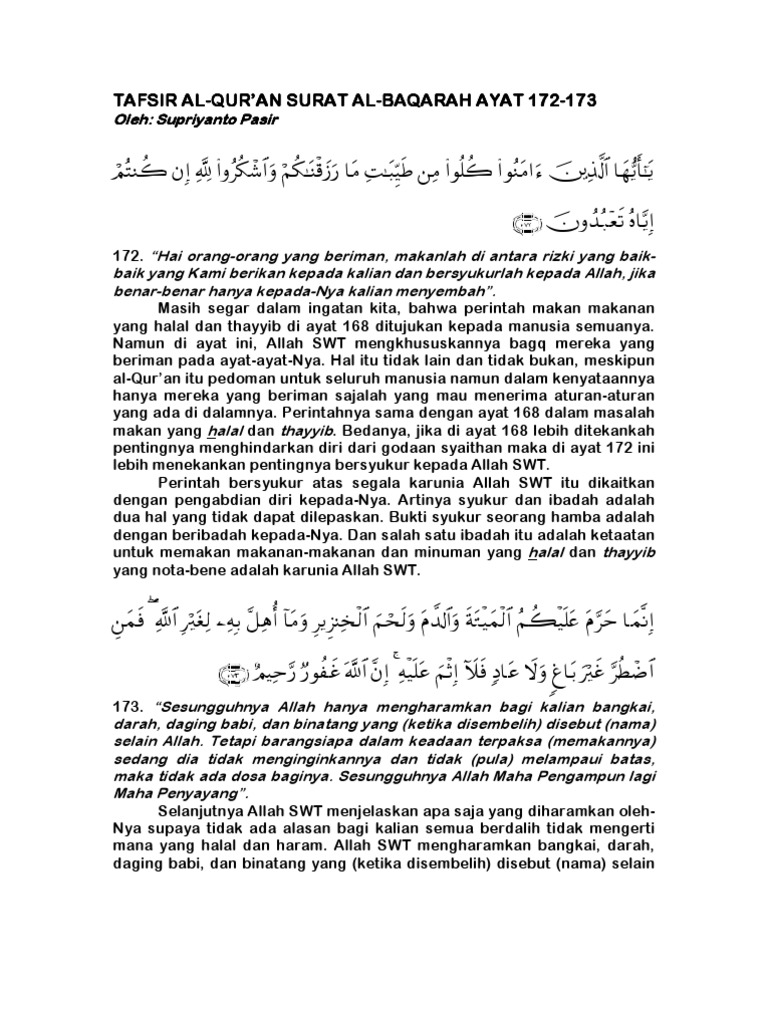 Surah Al Baqarah Ayat 172 176 Tafsir Dan Terjemahannya Pecihitam Org