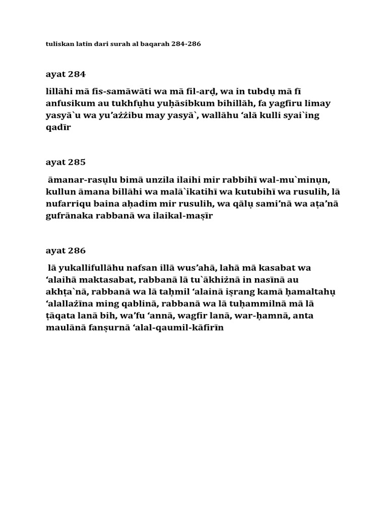 Surat Al Baqarah Ayat 284 286 Latin Dan Artinya Contoh Seputar Surat
