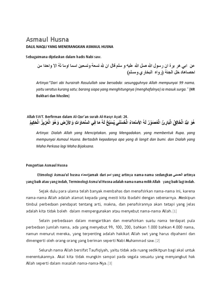 Hadits Tentang Asmaul Husna Arab Latin Arti Dan Penjelasannya