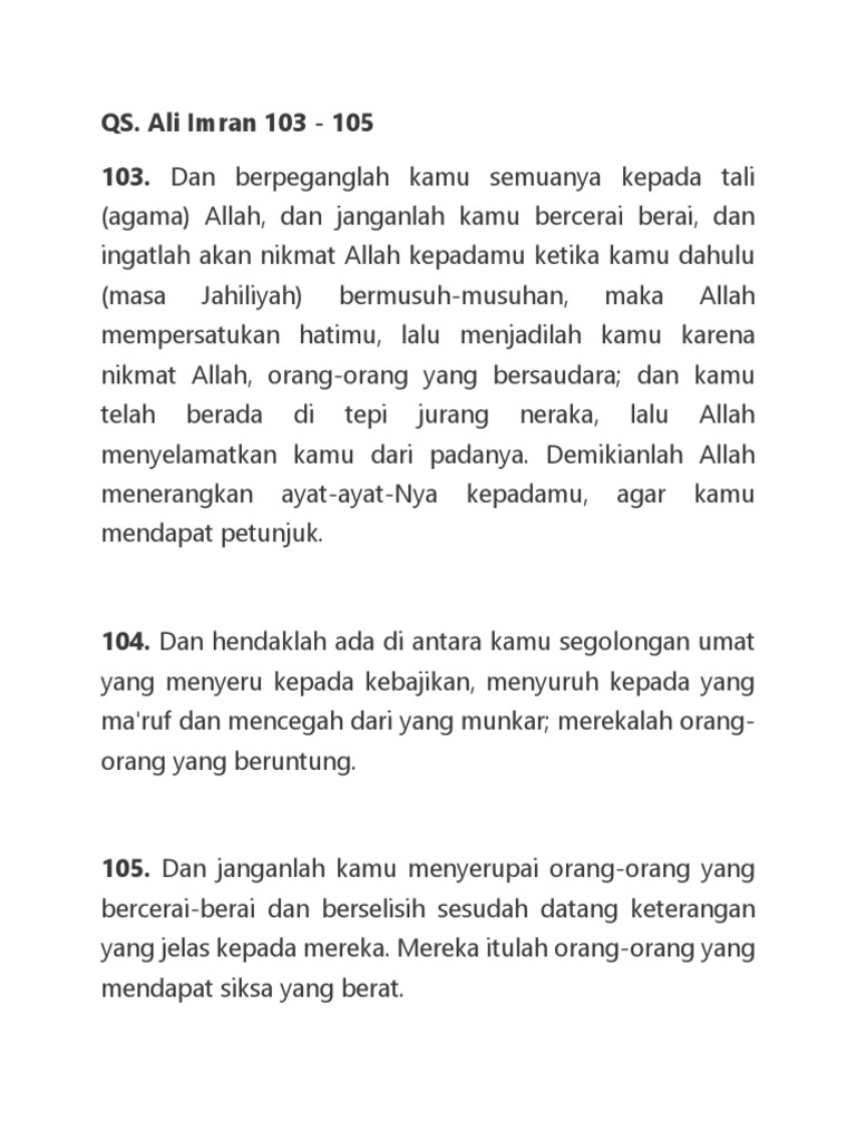 Apa Makna Dari Surah Ali Imran Ayat 103 Sampai 105 Brainly Co Id