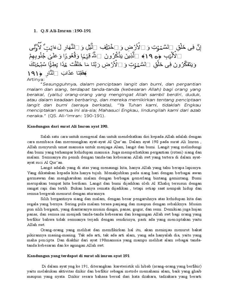 Doc Tafsir Qs Ali Imran Ayat 190 191 Syahroni Nano Academia Edu