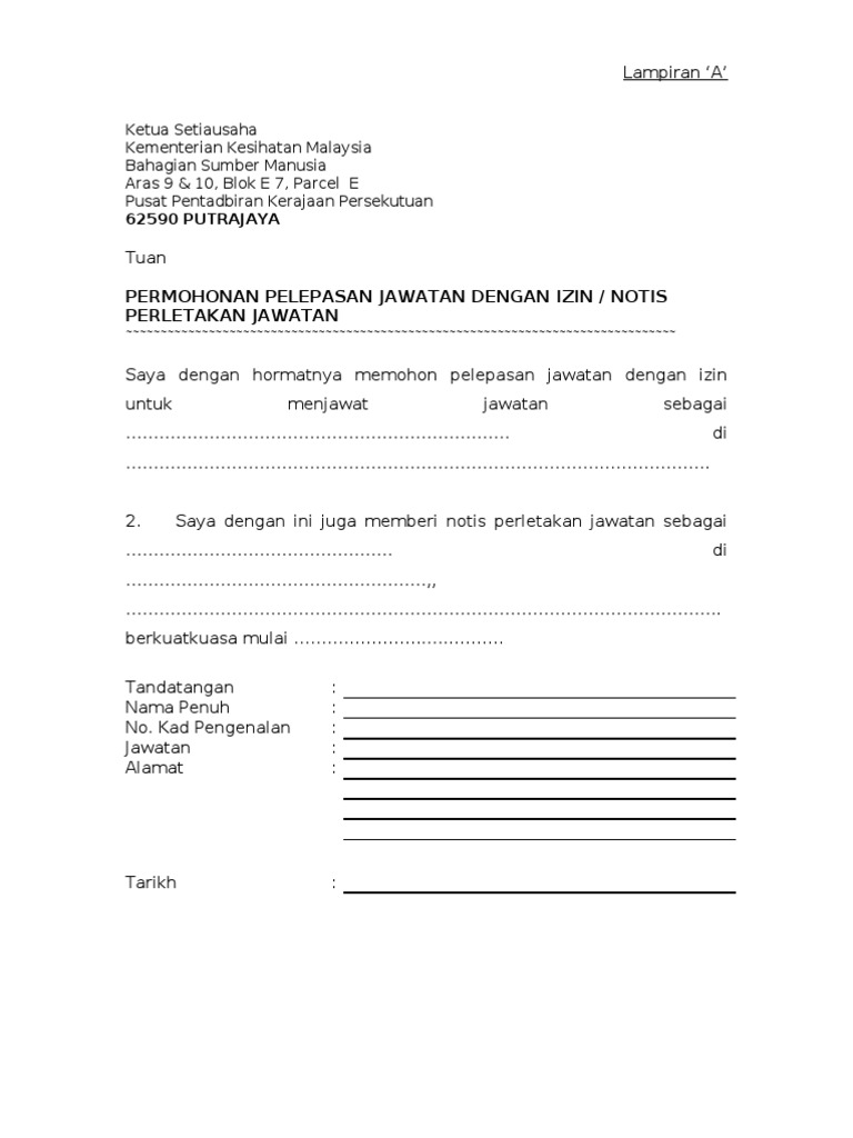 Contoh Surat Berhenti Kerja 30 Hari Terkini Kerja Kosong Kerajaan