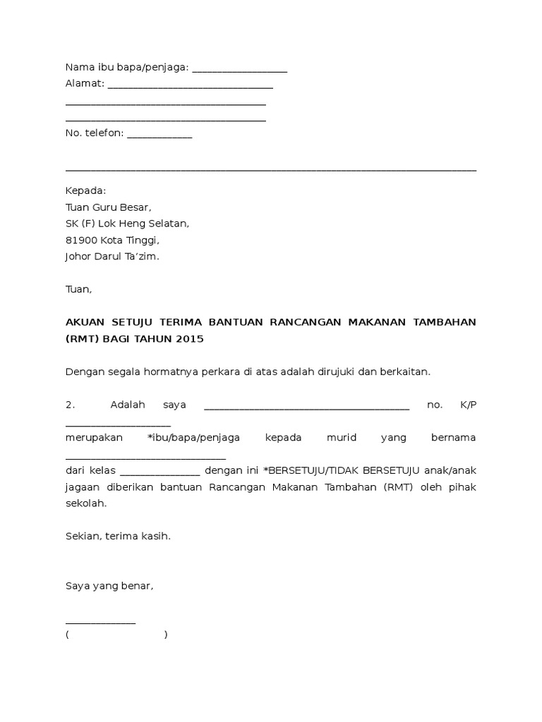 2 Contoh Surat Setuju Terima Rmt 2018