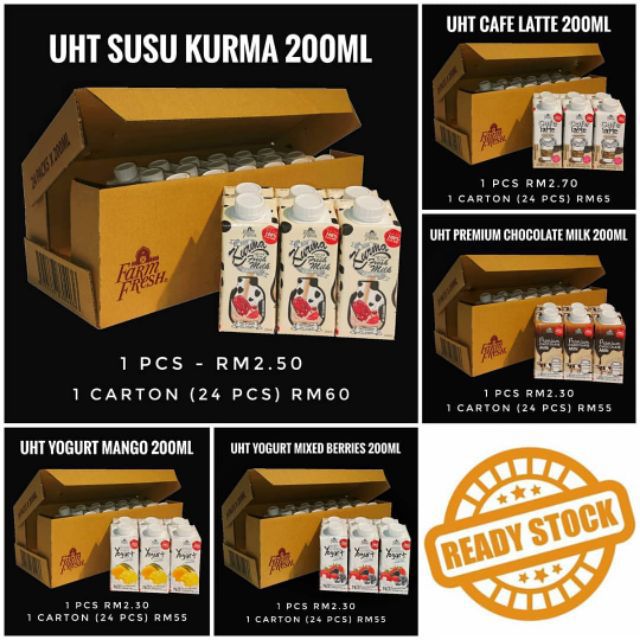 Ready Stock 1 Carton Farm Fresh Uht Milk Kurma Coklat Latte Shopee Malaysia