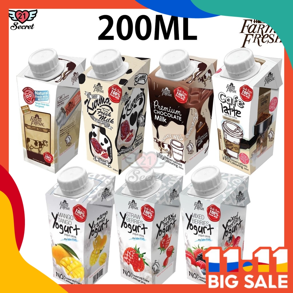 Farm Fresh Uht Fresh Milk Chocolate Kurma Cafe Latte Mix Berries Mango Strawberries Yogurt 200ml Susu Uht Shopee Malaysia