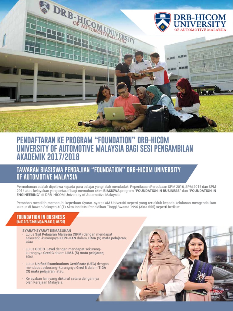Pengajian Asasi Jangan Ketinggalan Drb Hicom University Of Automotive Malaysia
