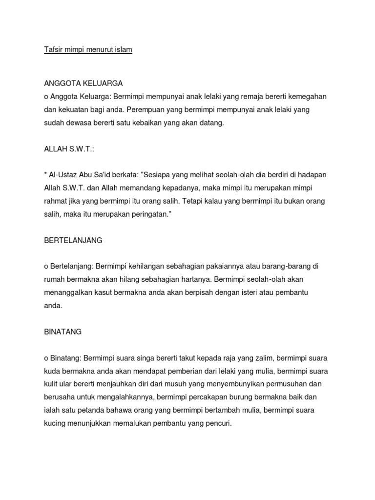 Tafsir Mimpi Pdf Tafsiran Mimpi Menurut Islam Mimpi Berkaitan Peristiwa Atau Kejadian 1 Bermimpi Menunaikan Solat Alamatnya Akan Sempurna Kerja Di Course Hero