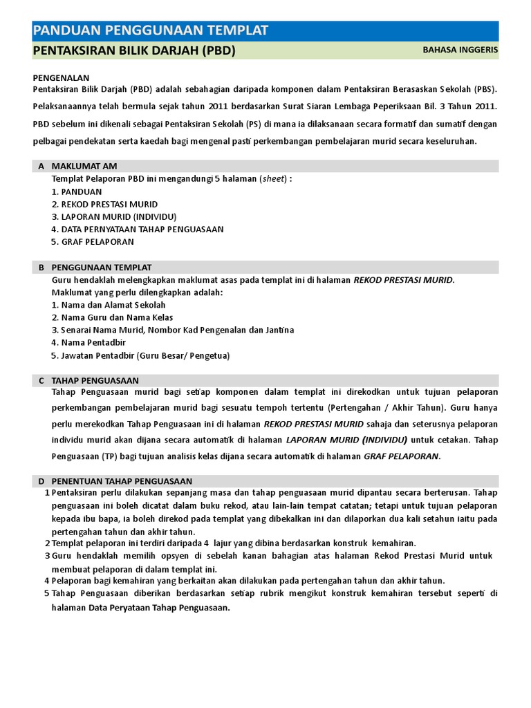 Templat Pelaporan Pbd B Inggeris Sk Tahun 3