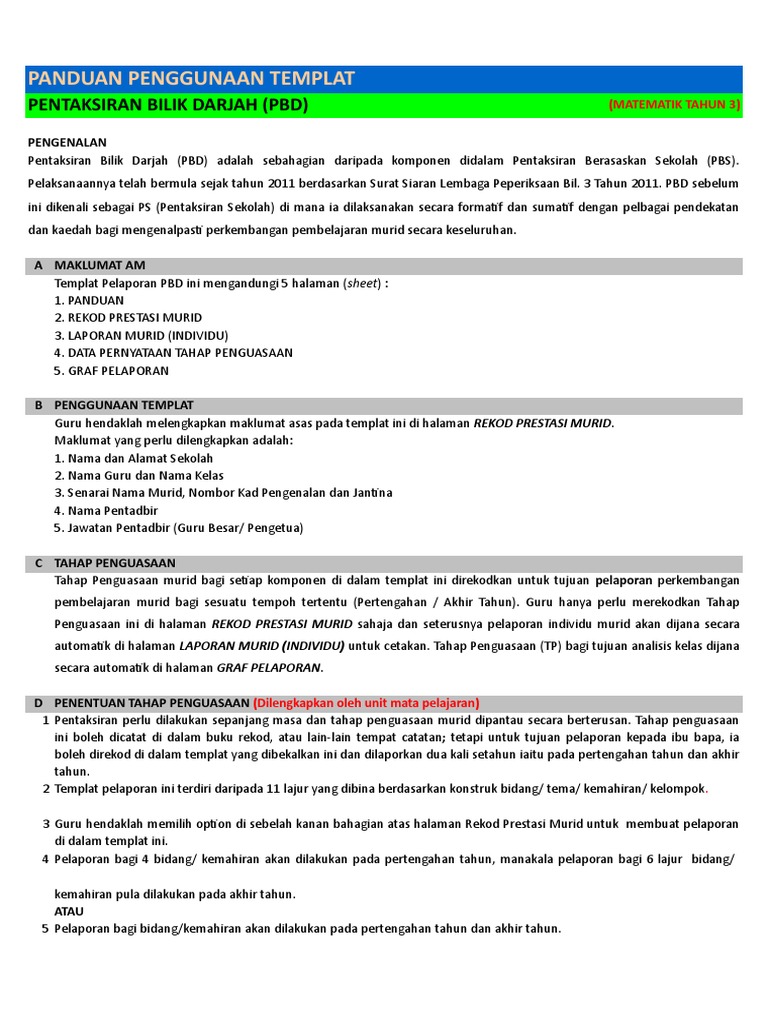 Template Pelaporan Pbd Tahun 3 Kssr Semakan 2017