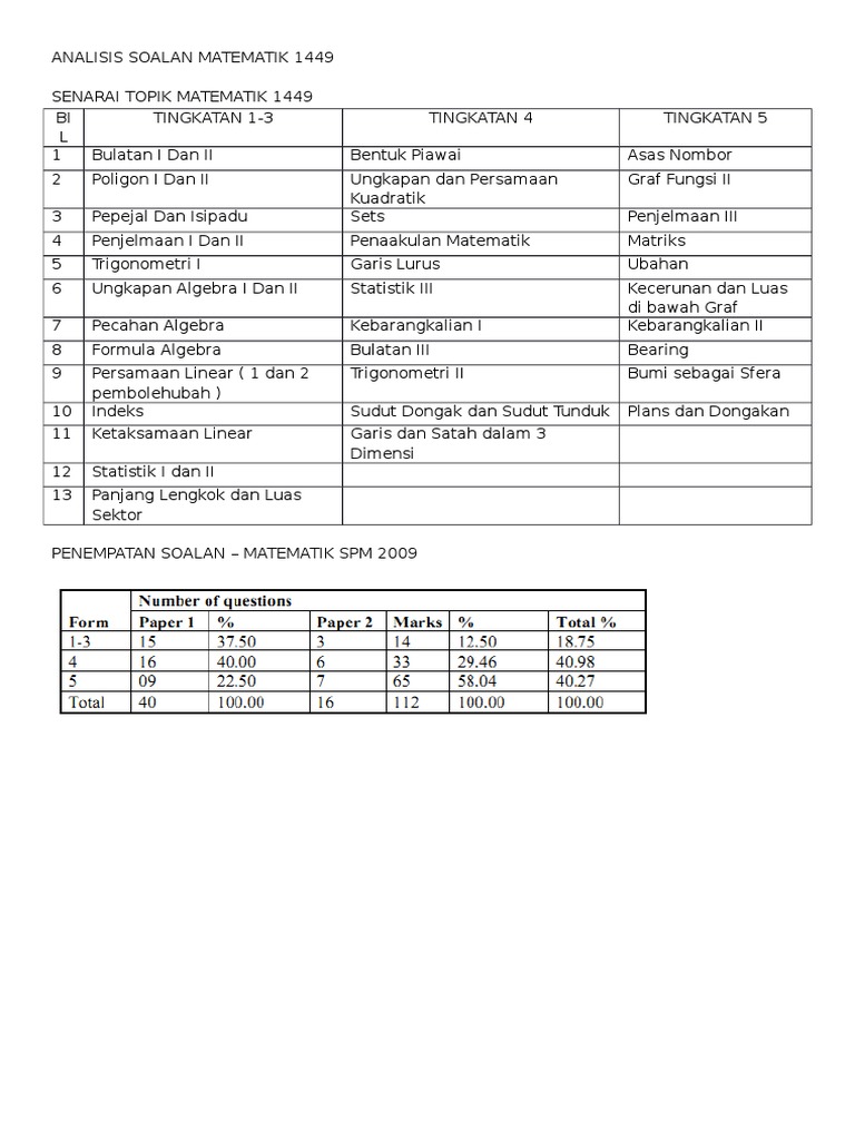 Analisis Tajuk Matematik 1449 Spm