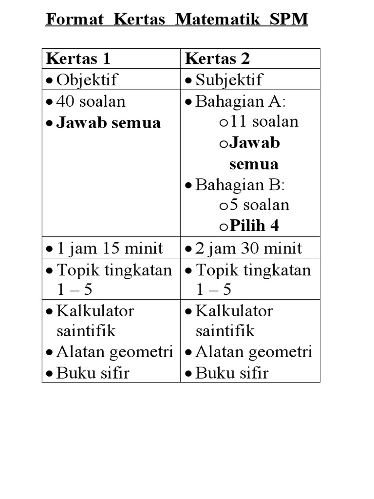Format Kertas Matematik Spm