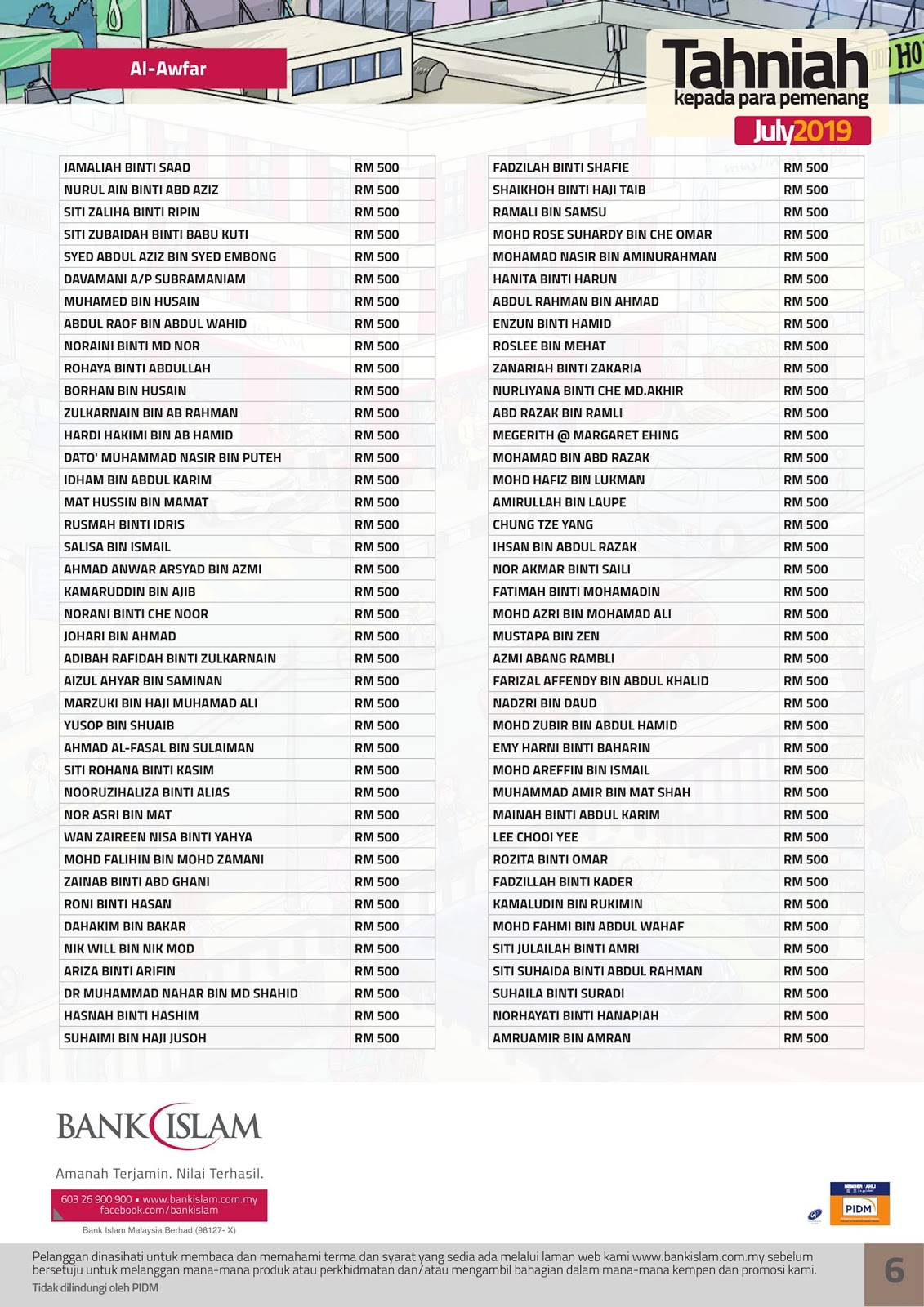 Tarikh cabutan al awfar 2017. Tempoh kempen tarikh tutup tempoh pengekalan. Bulan hadiah hadiah wang tunai rm pemenang april 1 100 000 nazrul hafiz bin ahmad misman 2 10 000 mohamad hisham bin hamzah 3 1 000 20 pemenang mei. Laporan prestasi dana bagi suku tahunan berakhir 30 jun 2017 3 3 4 pemenang cabutan hadiah al awfar bagi suku tahunan berakhir 30 jun 2017 cabutan bulanan. Pada masa sama bank islam turut memperkenalkan kempen al awfar terbaru iaitu kempen al awfar go umrah yang bermula dari 2 oktober 2017 sehingga 31 disember 2018 dan lima individu bertuah akan memenangi hadiah pakej mengerjakan umrah pada setiap bulan melalui cabutan khas bank islam.
