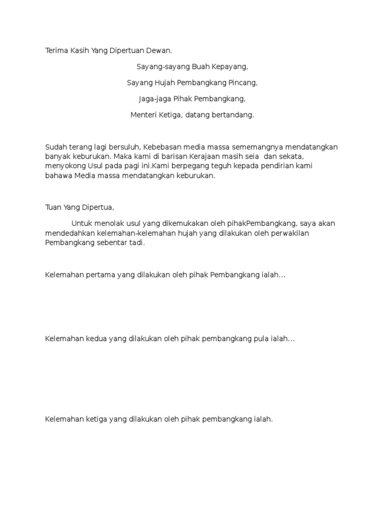 Doc Contoh Teks Pendahuluan Bahas Ala Parlimen A Tuan Yang Dipertua Dan Ahli Ahli Dewan A Kami Menerima Dengan Pindaan Definisi Usul Pihak Kerajaan A Degan Izin Tuan Yang Dipertua Saya Mohon Meminda