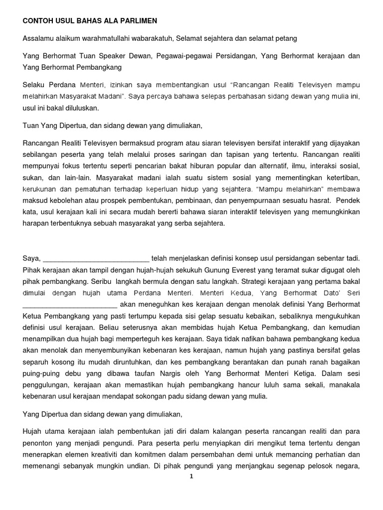 Doc Contoh Teks Pendahuluan Bahas Ala Parlimen A Tuan Yang Dipertua Dan Ahli Ahli Dewan A Kami Menerima Dengan Pindaan Definisi Usul Pihak Kerajaan A Degan Izin Tuan Yang Dipertua Saya Mohon Meminda