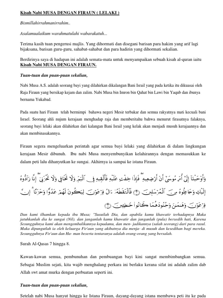 Teks Bercerita Kisah Nabi Musa Dan Firaun