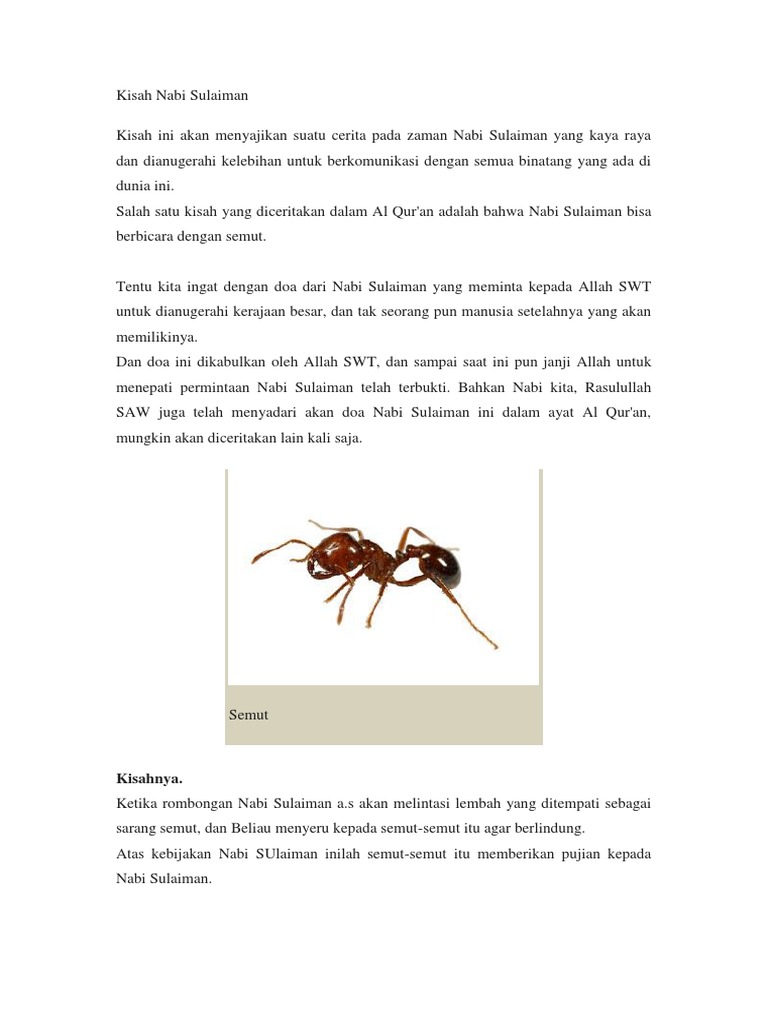 Printable Nabi Sulaiman Dan Semut Write Care And Share
