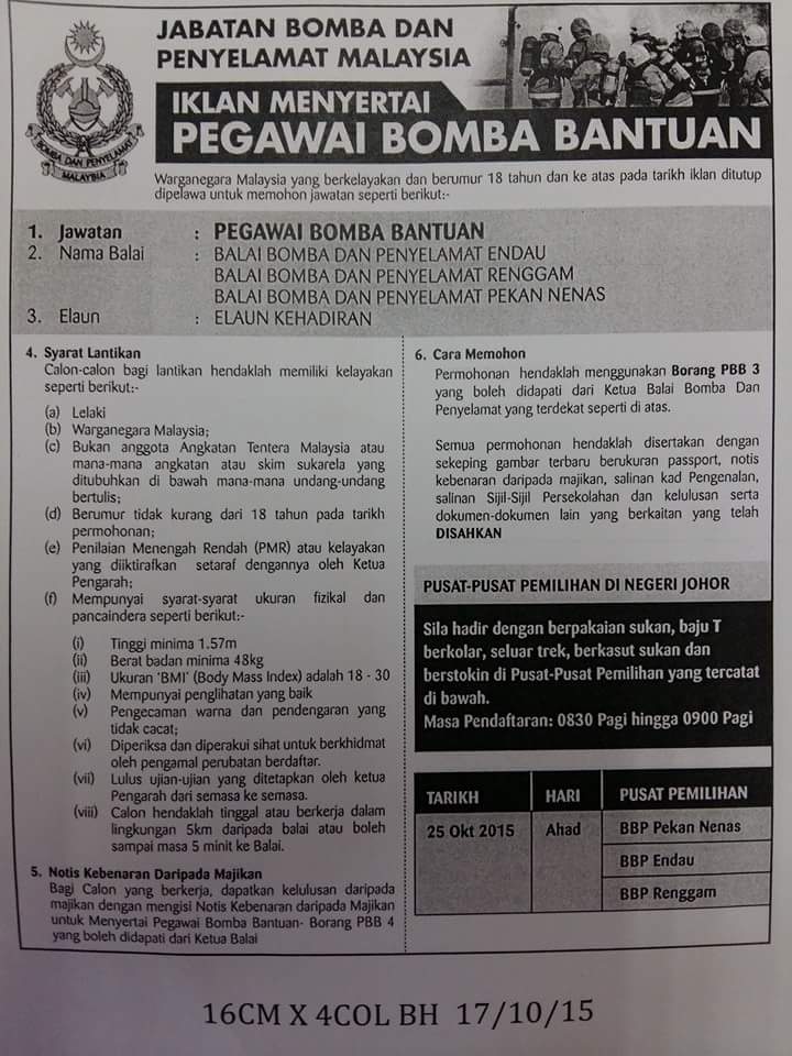 Temuduga Terbuka Di Jabatan Bomba Dan Penyelamat Malaysia Jbpm Sebagai Pegawai Bomba Bantuan Mei 2017 Appjawatan Malaysia