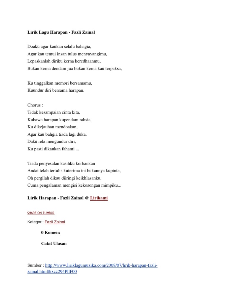 Harapan Lyrics And Music By Fazli Zainal Arranged By Pamie