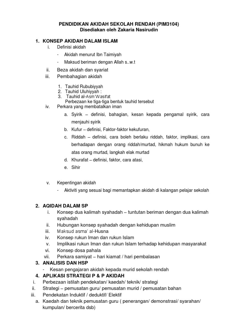 Perkara Yang Membatalkan Aqidah Pdf