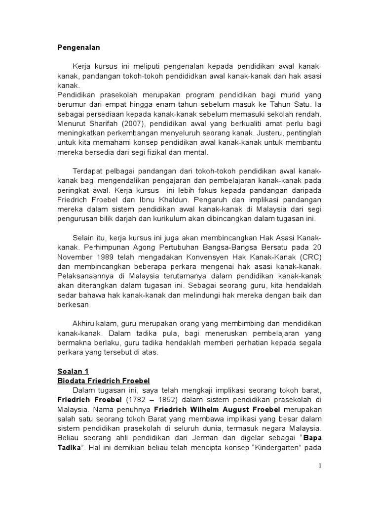 Tokoh pendidikan awal kanak kanak di malaysia. Oleh itu pendidikan awal merupakan. Dalam perkembangan pendidikan kanak kanak semenjak prasekolah mengikut falsafah pendidikan negara. Pada tahun 1900 an pendidikan awal kanak kanak mula ditubuhkan di filipina singapura dan thailand sahaja. Kajian kajian lepas berkaitan pendidikan awal kanak kanak di peringkat tadika atau pra sekolah.