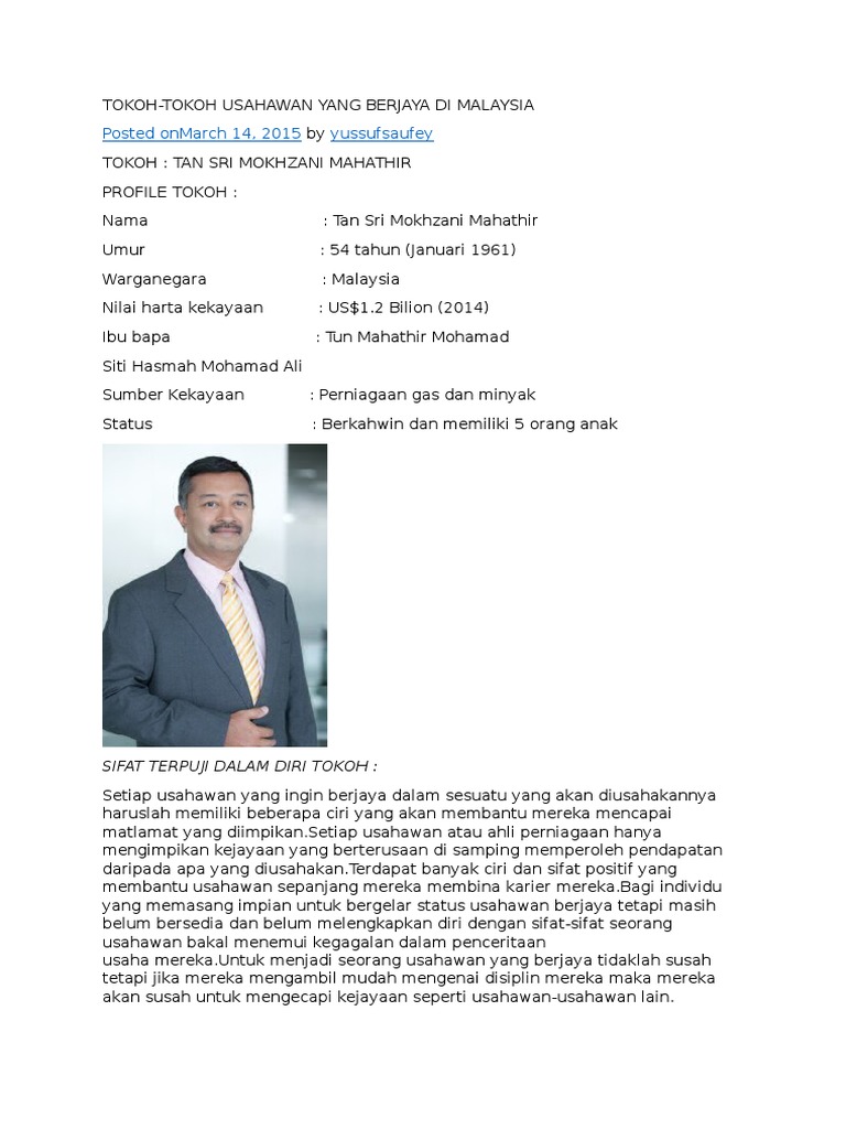 Tokoh Tokoh Usahawan Yang Berjaya Di Malaysia Yussuf0saufey
