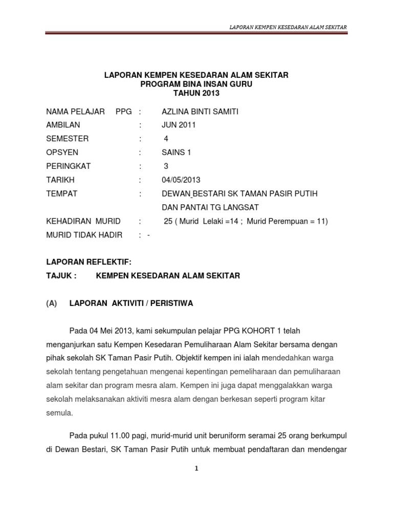 Kertas Kerja Program Melestarikan Alam Sekitar Kempen Kesedaran Alam Sekitar