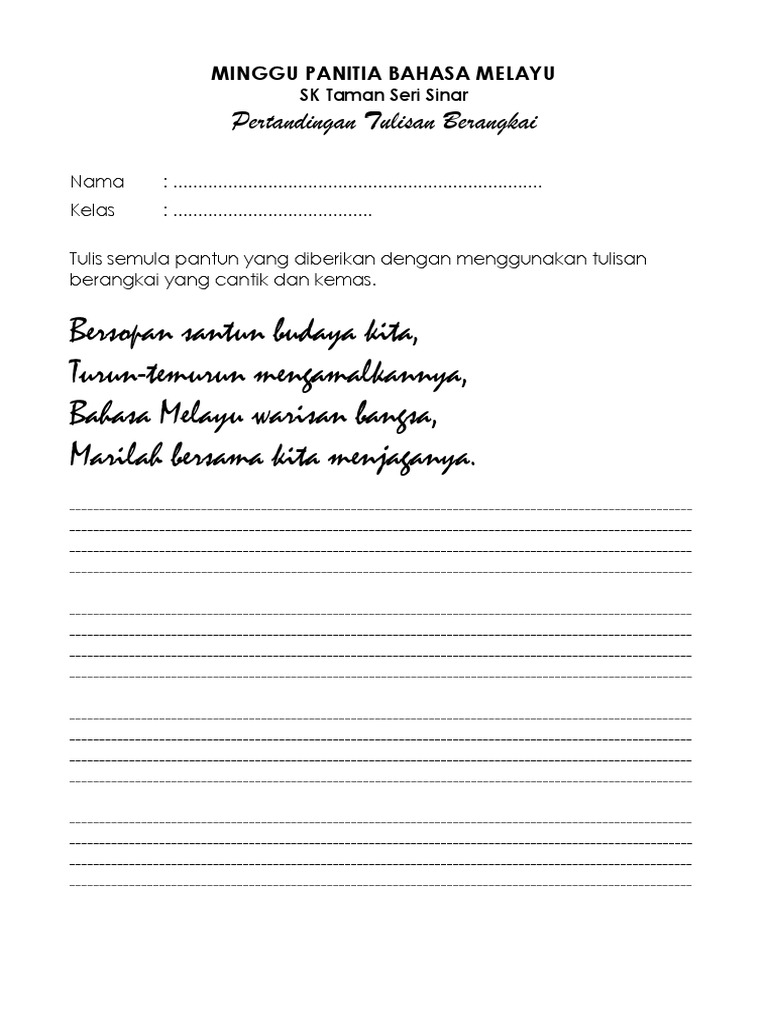 Tulisan berangkai yang cantik. The si cantik font has been downloaded 7 344 times. Tulisan berangkai posted by rohani m u at 7 27 pm. Tulisan yang cantik dan kemas. Tapi hari ini yana bukannya nak berkongsi tulisan tulisan yang buruk hari ini yang akan kongsikan dengan anda koleksi tulisan yang paling cantik di dunia ini.