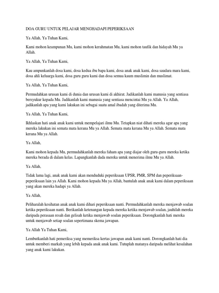 Doa Guru Untuk Pelajar Menghadapi Peperiksaan Docx