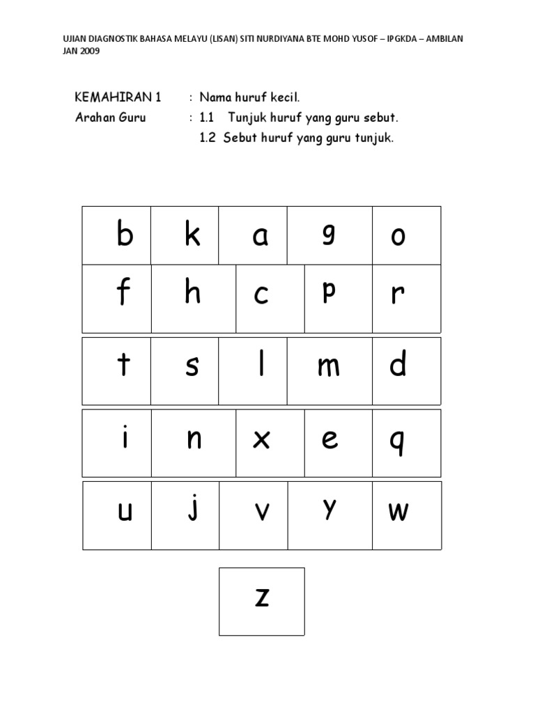 Ujian Diagnostik Tahun 1 2016 Lisan
