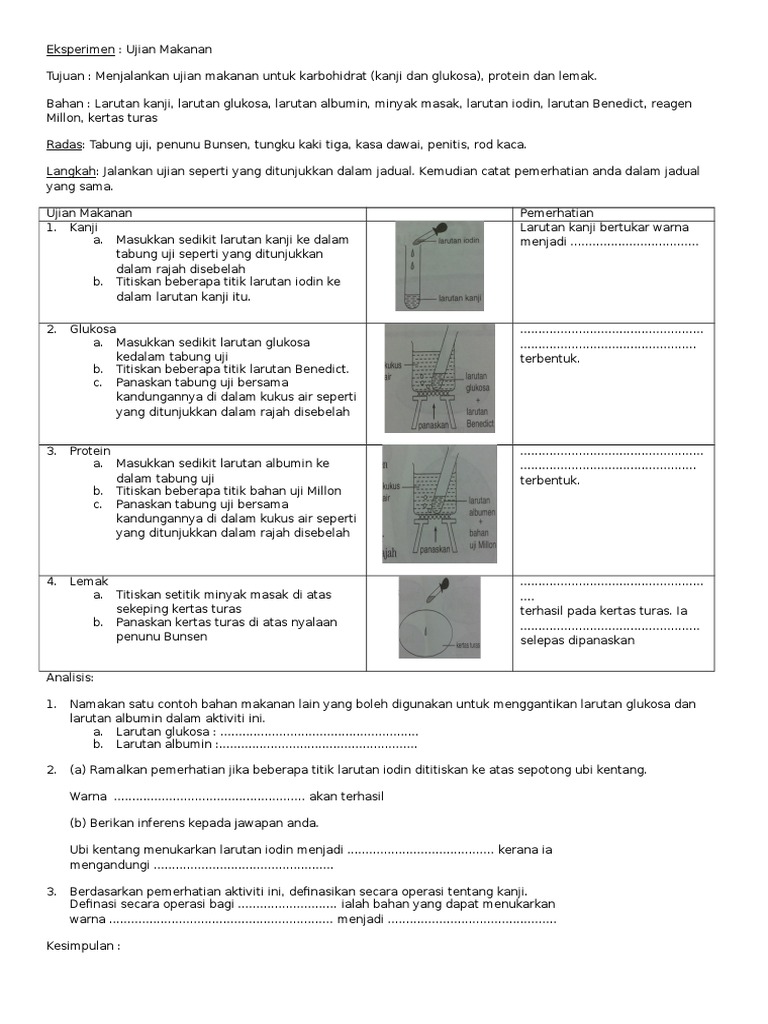 Laporan Amali 02 Ujian Untuk Makanan Pdf Amali 2 Ujian Untuk Makanan Pengenalan Nutrien Ialah Bahan Atau Zat Makanan Yang Berguna Kepada Badan Nutrien Course Hero