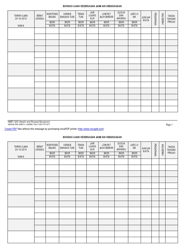 Borang ujian kecergasan jasmani kebangsaan 2 biodata peserta.